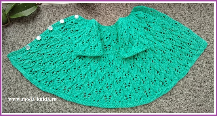 27 р: вяжем узор на юбочке и первый ряд узора в сокращенном варианте - подробное описание: 1 кр, 2 изн, (5 л, 2 изн, 3 л, 2 изн) - 11 раз, 1 кр;